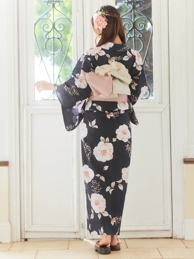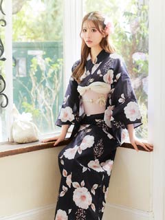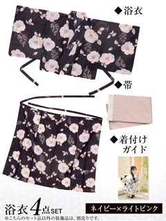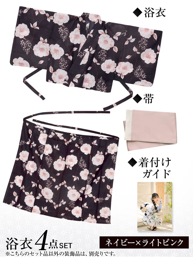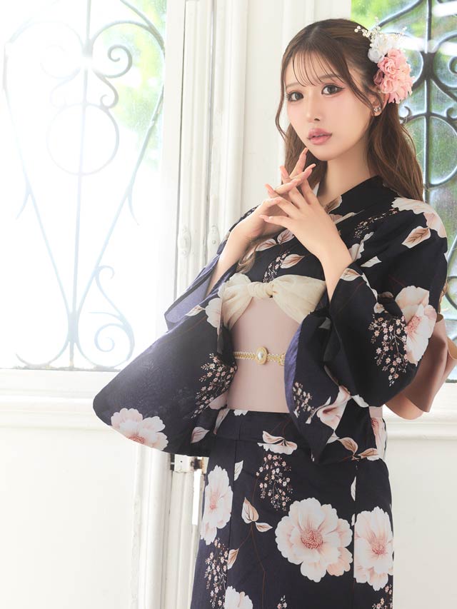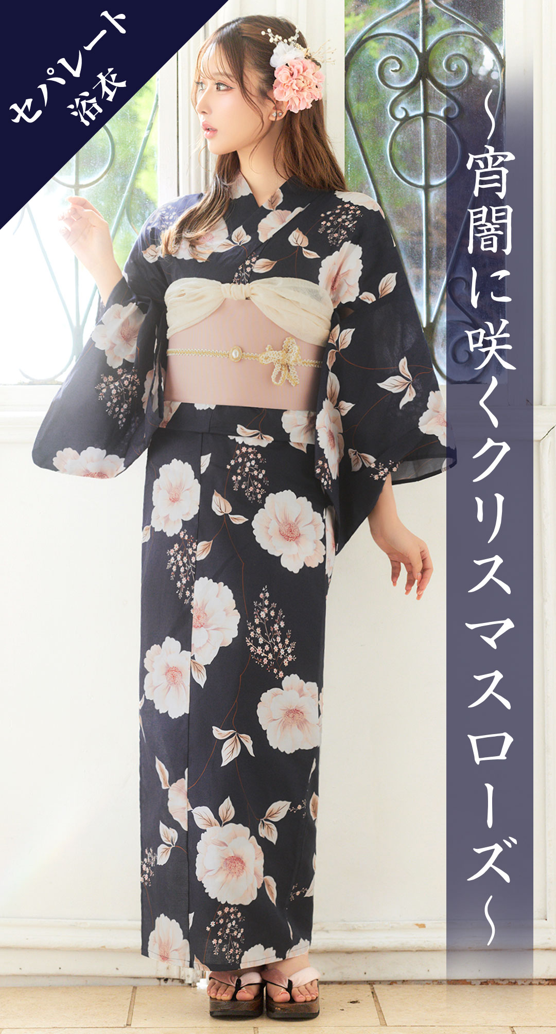 [セパレート浴衣] 濃紺クリスマスローズ柄浴衣[4点SET]【YUKATA by dazzy 2025】