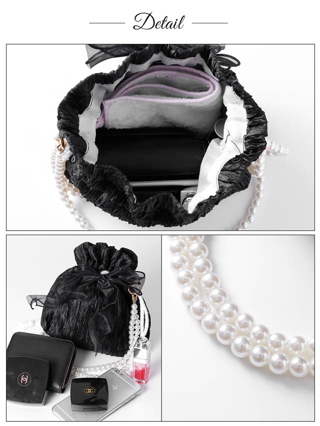 [単品]パールシアーリボン巾着バッグ【2025年新作/YUKATA by dazzy】
