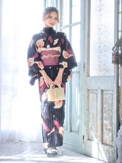 [2点SET]カラーリリー×縦縞柄浴衣【2023年新作/YUKATA by dazzy】