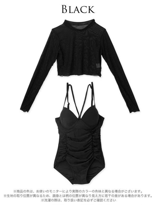 [2点SET]ギャザーコードメッシュ長袖ワンピース/水着【dazzy beach/2025ビキニ】