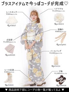 [2点SET]グレー地牡丹柄浴衣【2023年新作/YUKATA by dazzy】