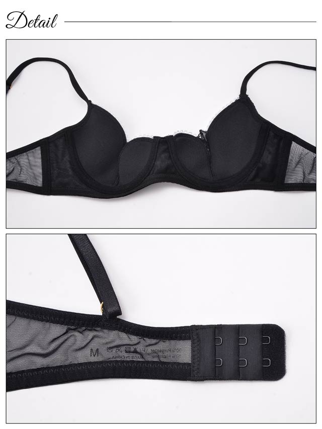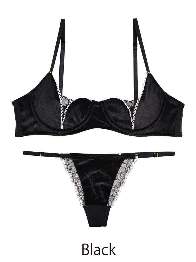 オールレースカットストリング育乳脇高ブラジャー&バック透けフルバックショーツ