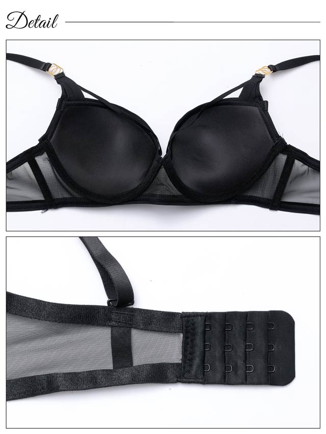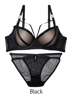 オールレースカットストリング育乳脇高ブラジャー&バック透けフルバックショーツ