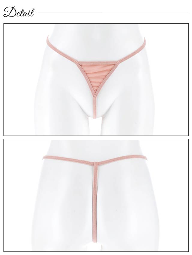 胸元を飾るローズ風のモチーフが目を惹く上品なピンクカラーのランジェリー。