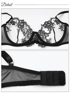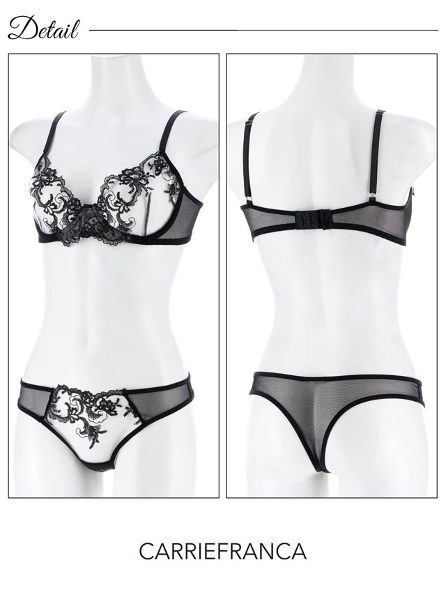 カップやショーツフロントは大胆に素肌が透けるデザインで色気漂う大人の魅力を演出します。