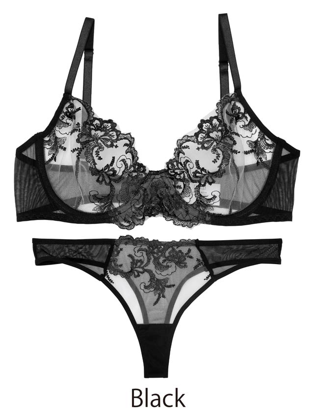 曲線を描く美しい花柄刺繍をあしらったシックな雰囲気のランジェリー。