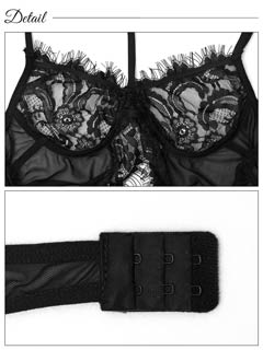 オールレースカットストリング育乳脇高ブラジャー&バック透けフルバックショーツ