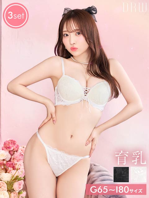 12/2再販!【三上悠亜着用】【3点セット】エトワールリボンレース育乳脇高ブラジャー&フルバック&Tバックショーツ[大人気]