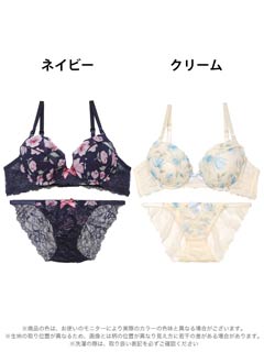 ダスティブルームエンブロイダリー育乳脇高ブラジャー&バック透けフルバックショーツ