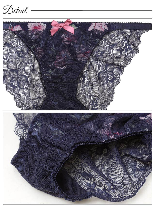 オールレースカットストリング育乳脇高ブラジャー&バック透けフルバックショーツ