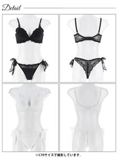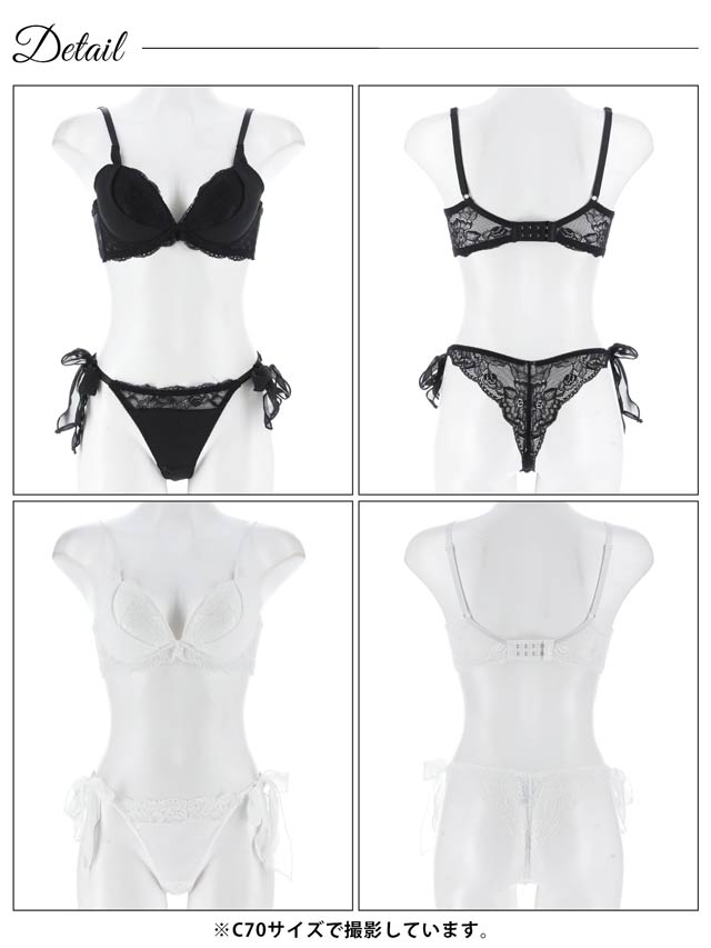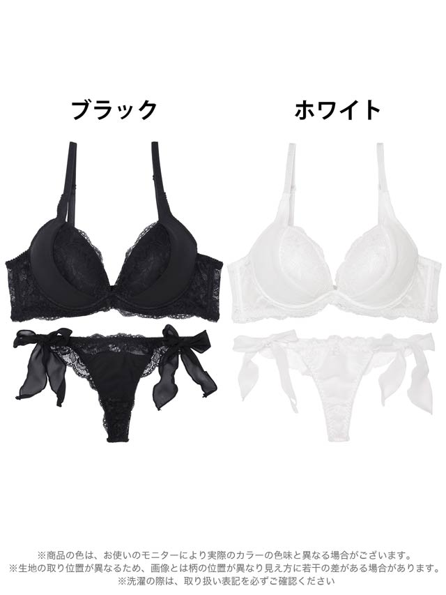 【かとゆり着用】モノトーンプティチュール育乳脇高ブラジャー&サイド紐バック透けTバックショーツ[激売れ]