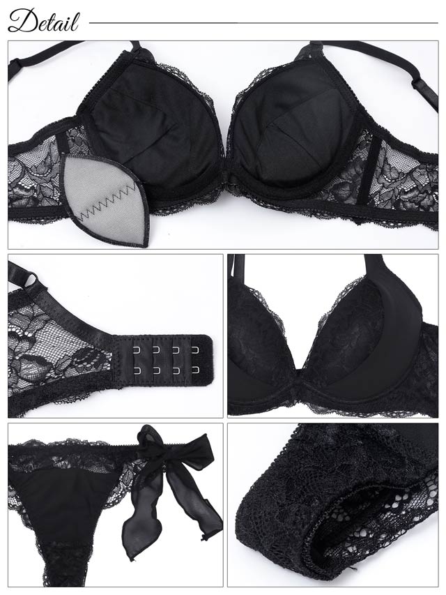 オールレースカットストリング育乳脇高ブラジャー&バック透けフルバックショーツ