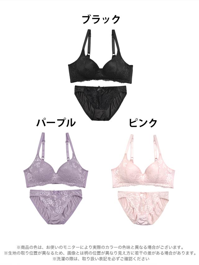 【ノンワイヤー】クラシックローズレース育乳脇高ブラジャー&フルバックショーツ