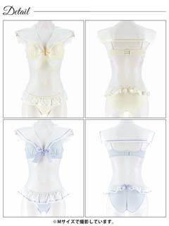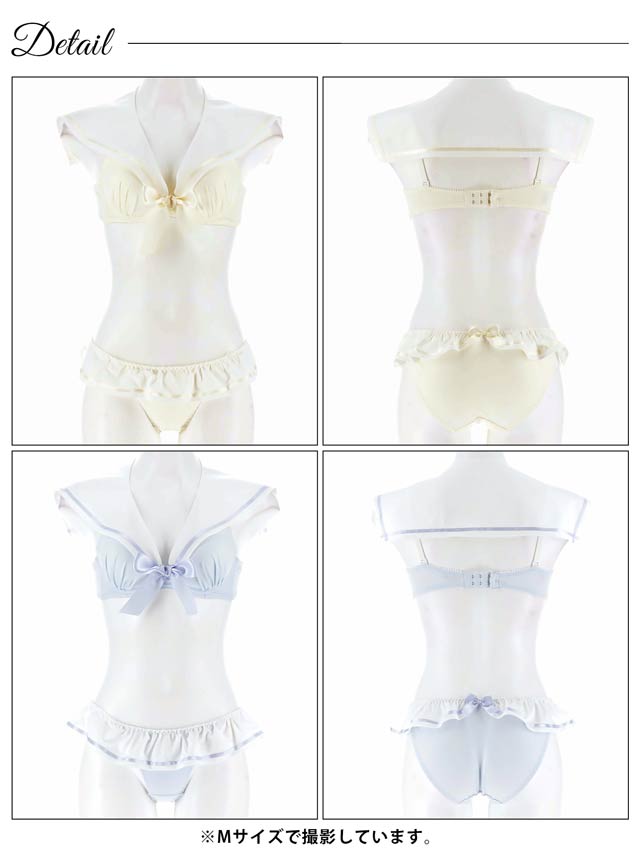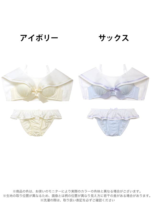 【ノンワイヤー】パステルセーラーカラーブラジャー&フルバックショーツ[大人気]