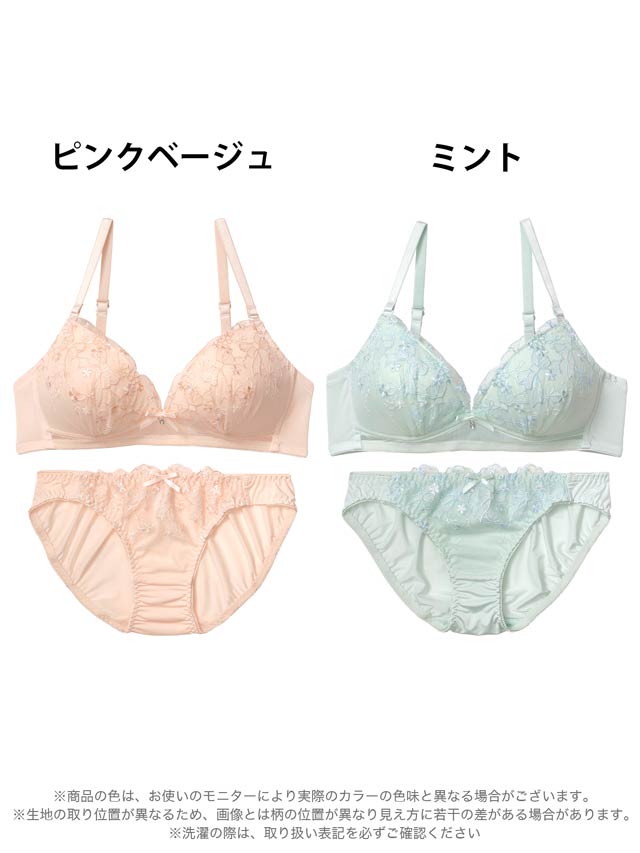 【ノンワイヤー】ピュアリーフラワーブラジャー&フルバックショーツ[激売れ]