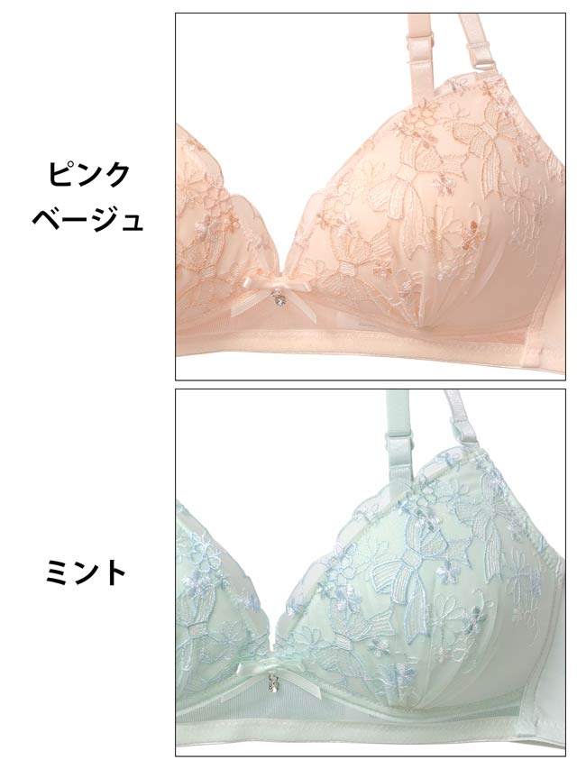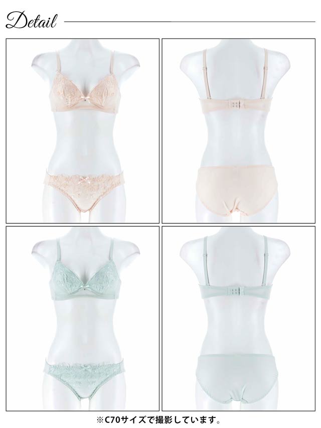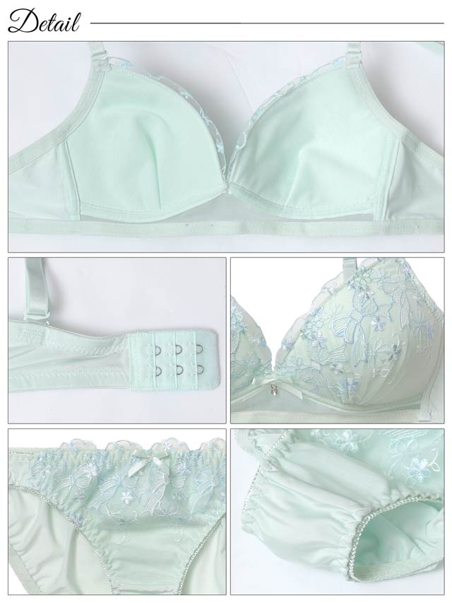 ダスティブルームエンブロイダリー育乳脇高ブラジャー&バック透けフルバックショーツ