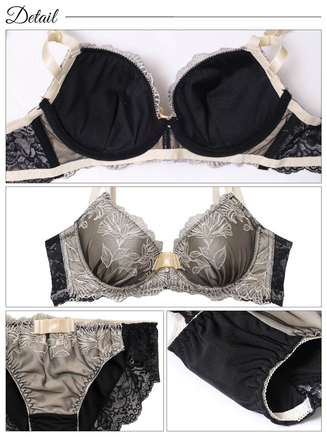 【三上悠亜着用】【EFサイズ】シックボタニカルフラワー育乳脇高ブラジャー&フルバックショーツ[大人気]