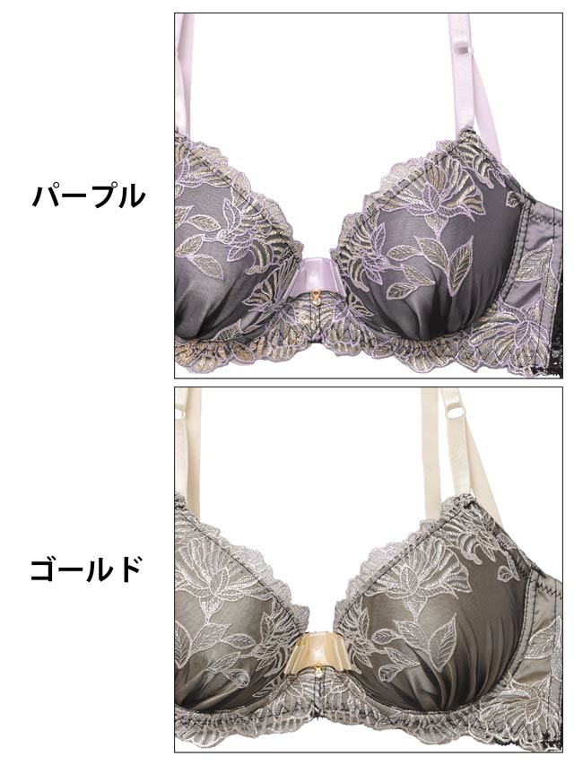 ダスティブルームエンブロイダリー育乳脇高ブラジャー&バック透けフルバックショーツ