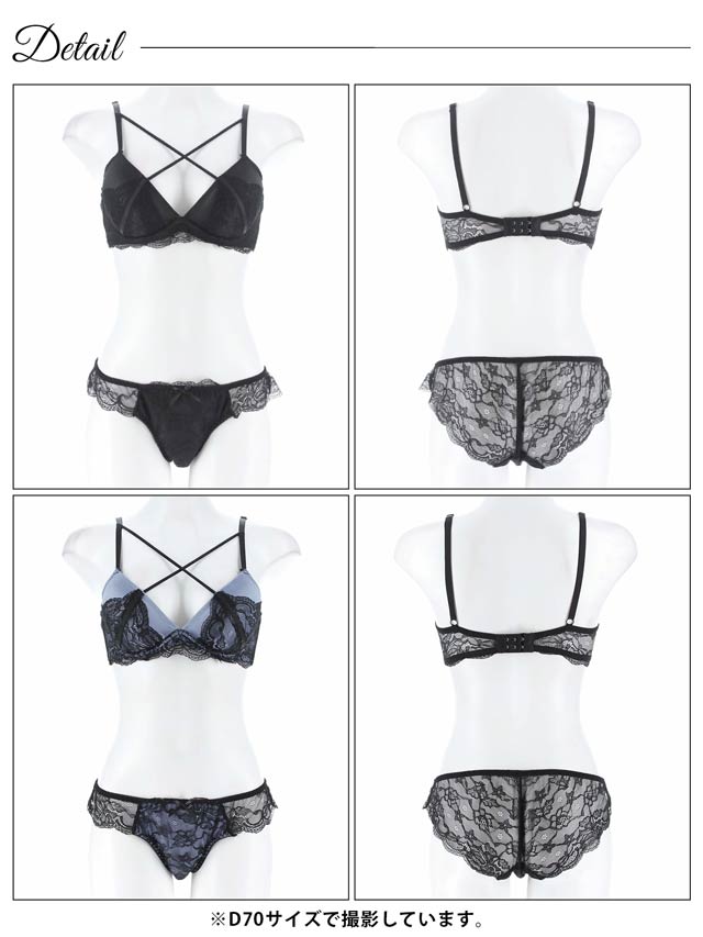オールレースカットストリング育乳脇高ブラジャー&バック透けフルバックショーツ