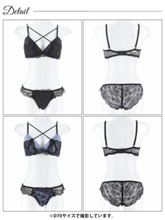 フロレゾンローズレース育乳脇高ブラジャー&サイド紐バック透けフルバックショーツ
