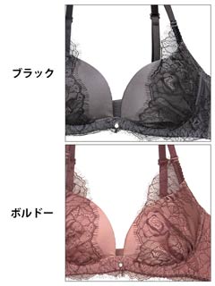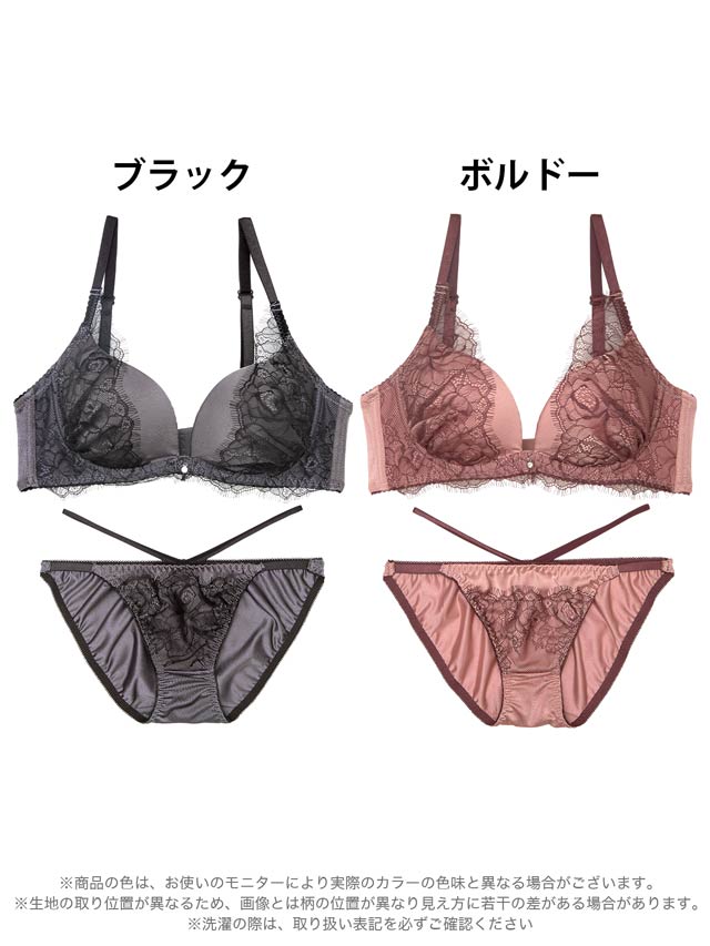 フロレゾンローズレース育乳脇高ブラジャー&サイド紐バック透けフルバックショーツ