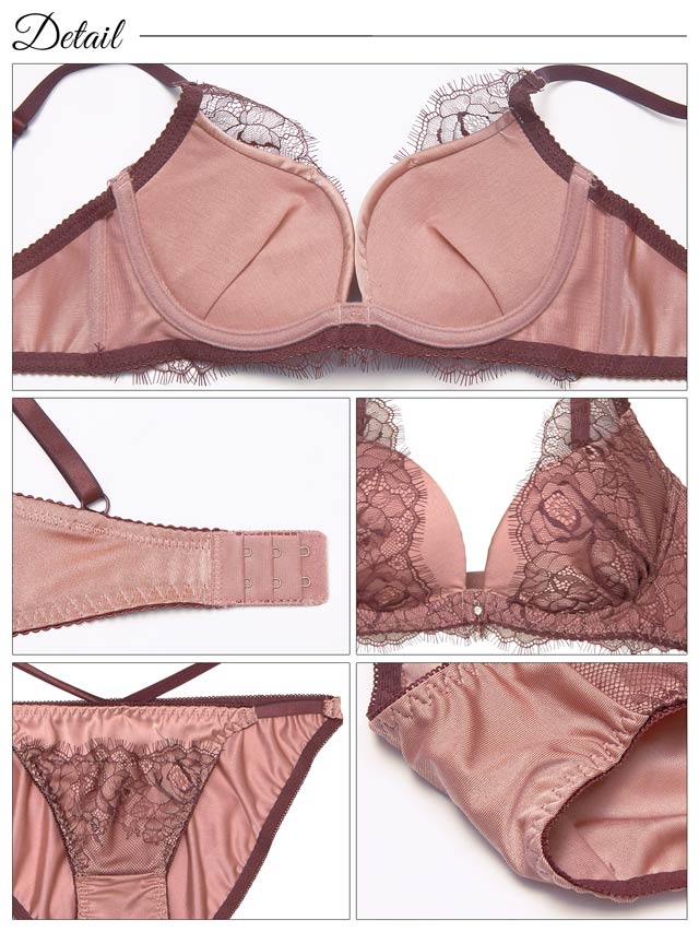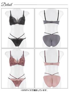 オールレースカットストリング育乳脇高ブラジャー&バック透けフルバックショーツ