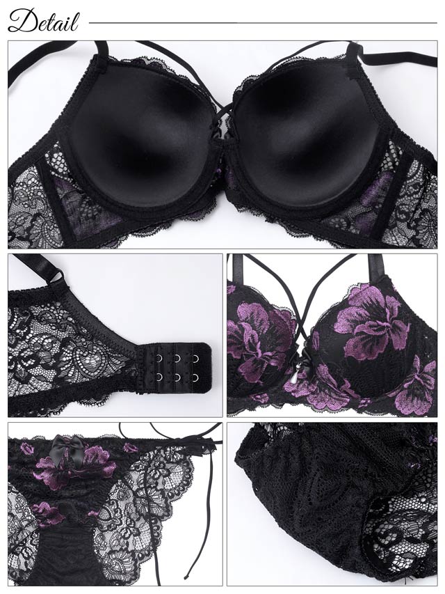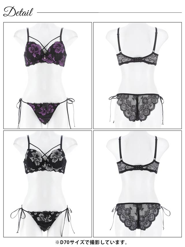 12/3再販!【三上悠亜着用】スモーキーカラー×ブラックフラワー刺繍ブラジャー&サイド紐Tバック[激売れ]
