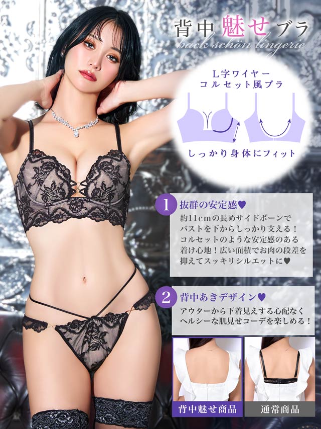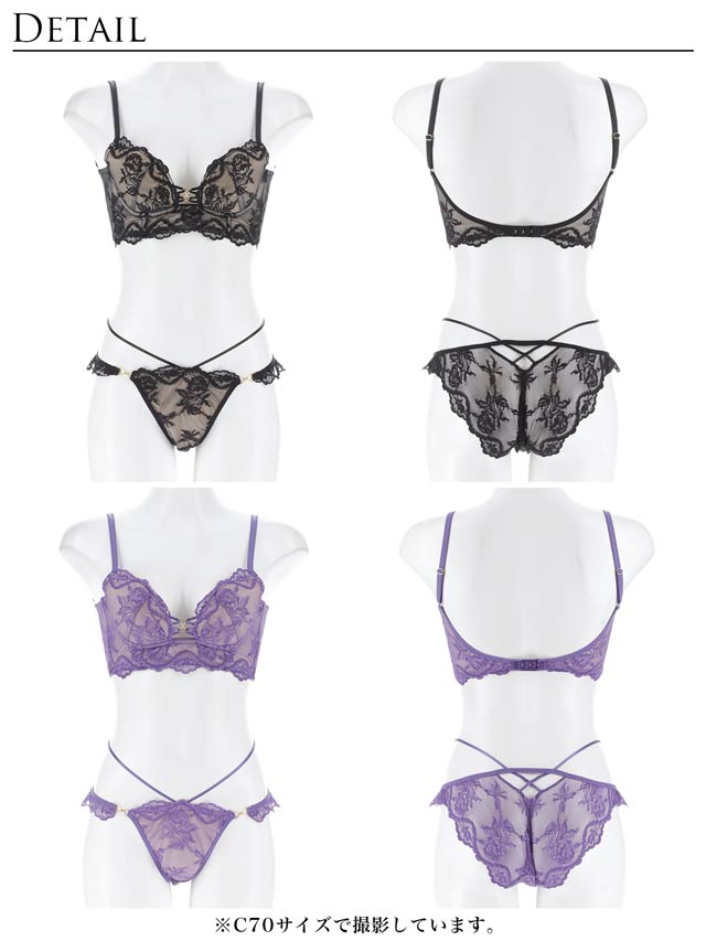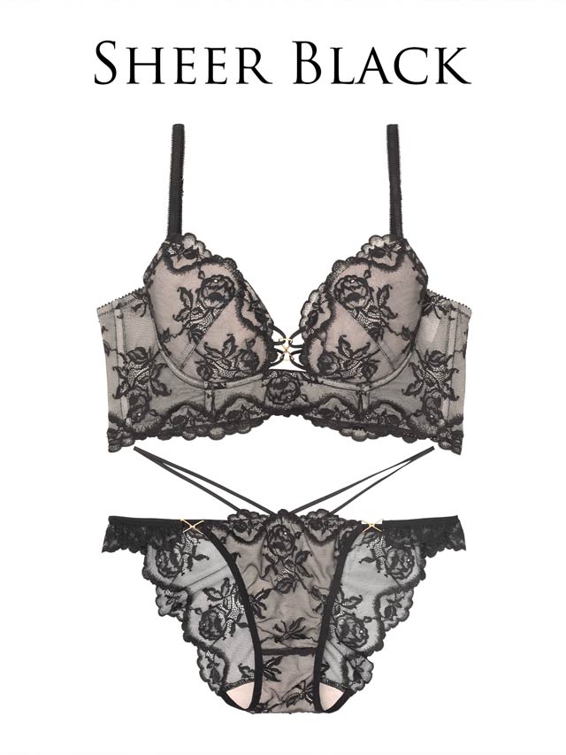 ロマンティックベルローズ育乳脇高ブラジャー&バック透けフルバックショーツ