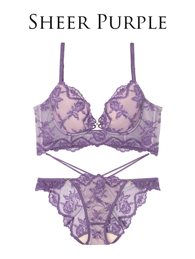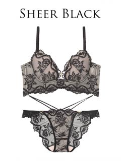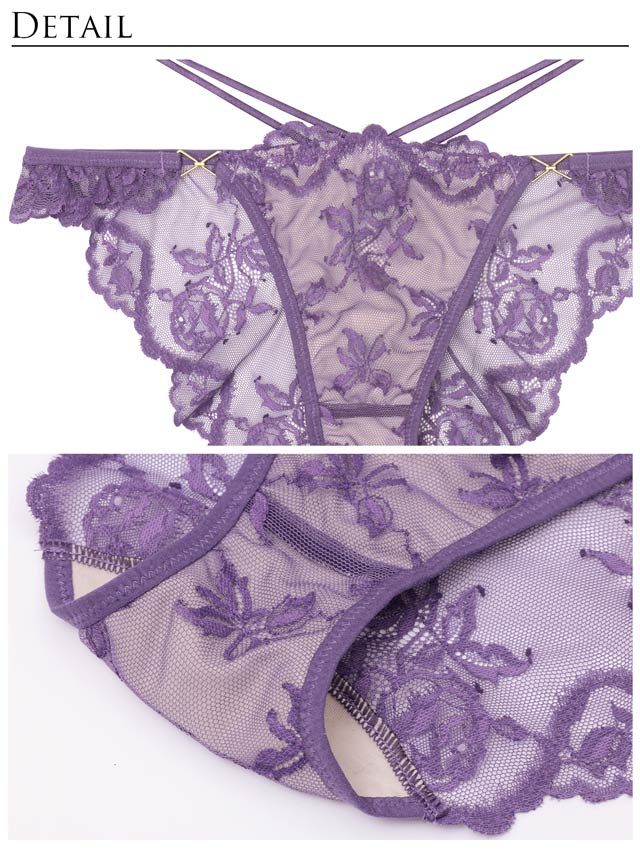 ダスティブルームエンブロイダリー育乳脇高ブラジャー&バック透けフルバックショーツ
