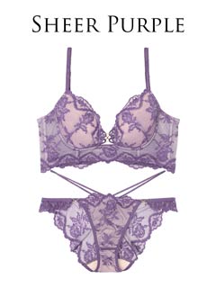 オールレースカットストリング育乳脇高ブラジャー&バック透けフルバックショーツ