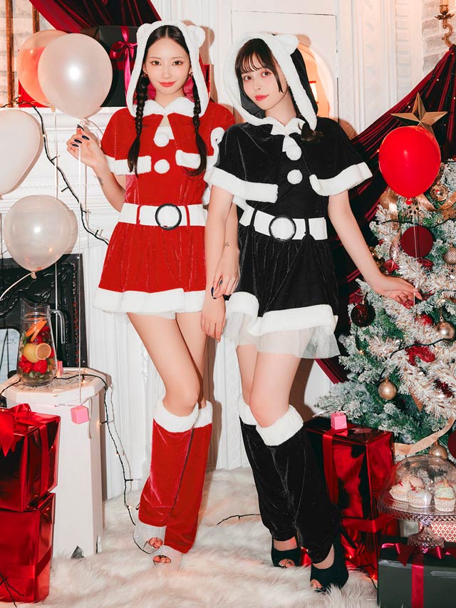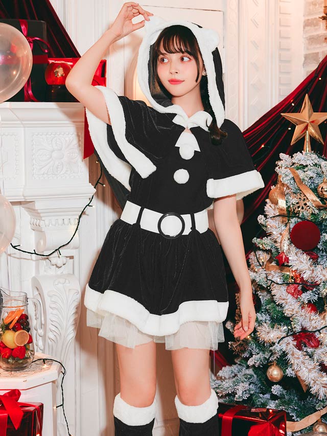 【累計3万着販売!!】[6点SET]ネコ耳ポンチョ&ミニスカートセット【2025サンタ/コスプレ】