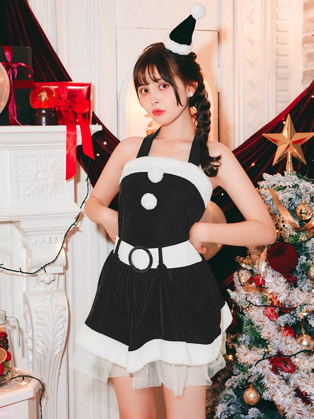 • 【累計3万着販売!!】[6点SET]ネコ耳ポンチョ&ミニスカートセット【2025サンタ/コスプレ】(ブラック-Sサイズ)