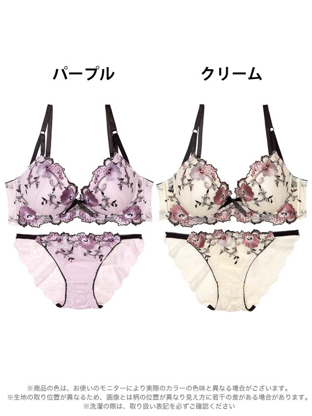 12/2再販!【三上悠亜着用】エレガンスフラワー刺繍ブラジャー&フルバックショーツ[激売れ]