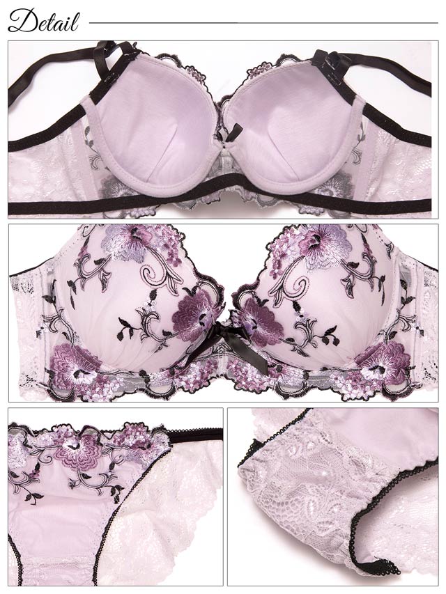 ダスティブルームエンブロイダリー育乳脇高ブラジャー&バック透けフルバックショーツ