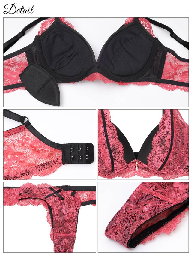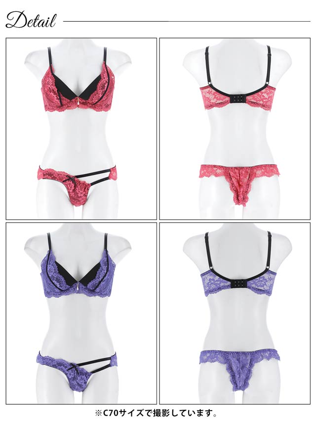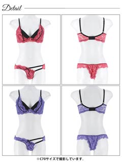 オールレースカットストリング育乳脇高ブラジャー&バック透けフルバックショーツ