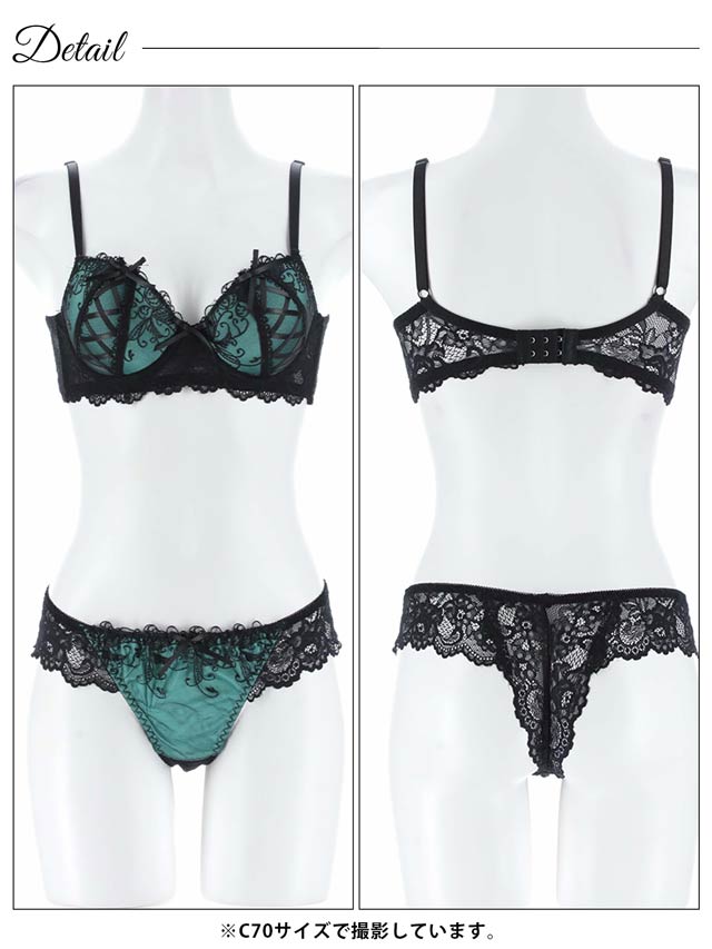 オールレースカットストリング育乳脇高ブラジャー&バック透けフルバックショーツ