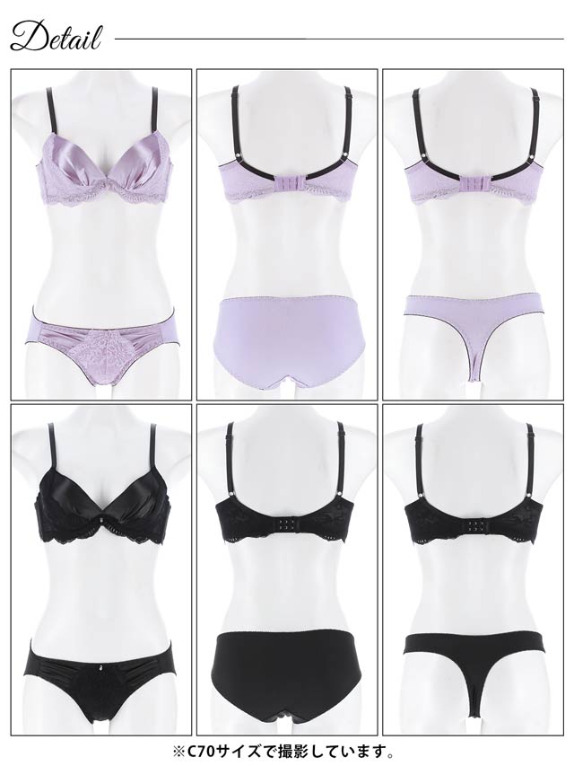 11/28新作!シックサテンレーシィ育乳脇高ブラジャー&バック透けTバックショーツ[激売れ]