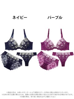 ダスティブルームエンブロイダリー育乳脇高ブラジャー&バック透けフルバックショーツ