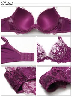 【ノンワイヤー】ファビュラスローズレース育乳脇高ブラジャー&フルバックショーツ[激売れ]