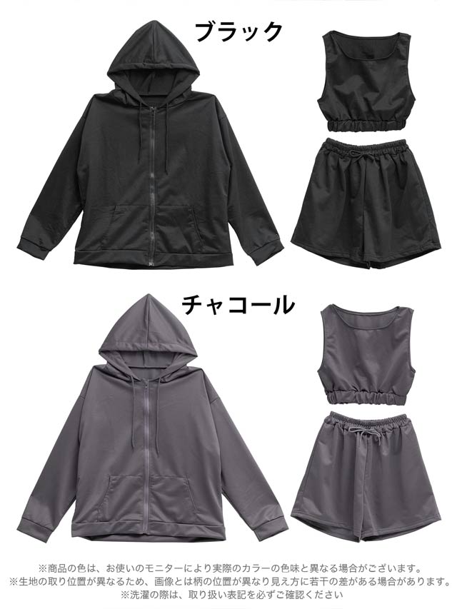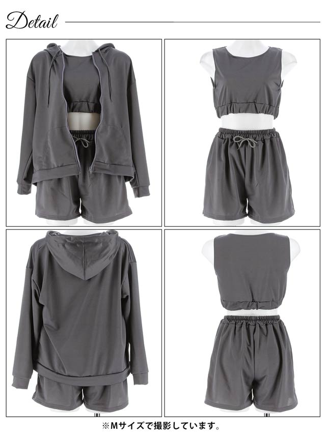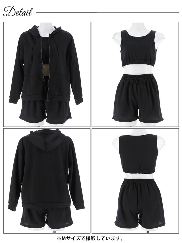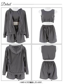 【3点セット】ハーフタンクトップ&ショートパンツ&パーカールームウェア