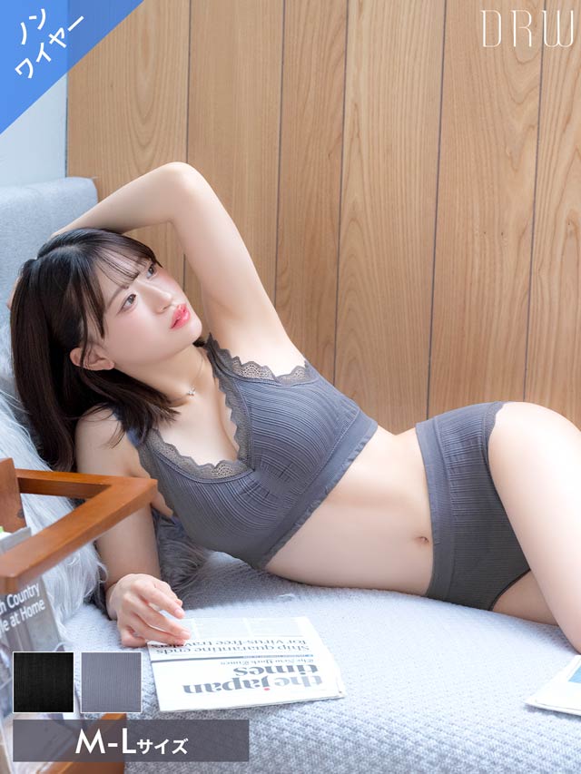 【5月頃再入荷決定★只今リクエスト募集中】【ノンワイヤー】ハーフトップレースブラジャー&フルバックショーツ[激売れ]