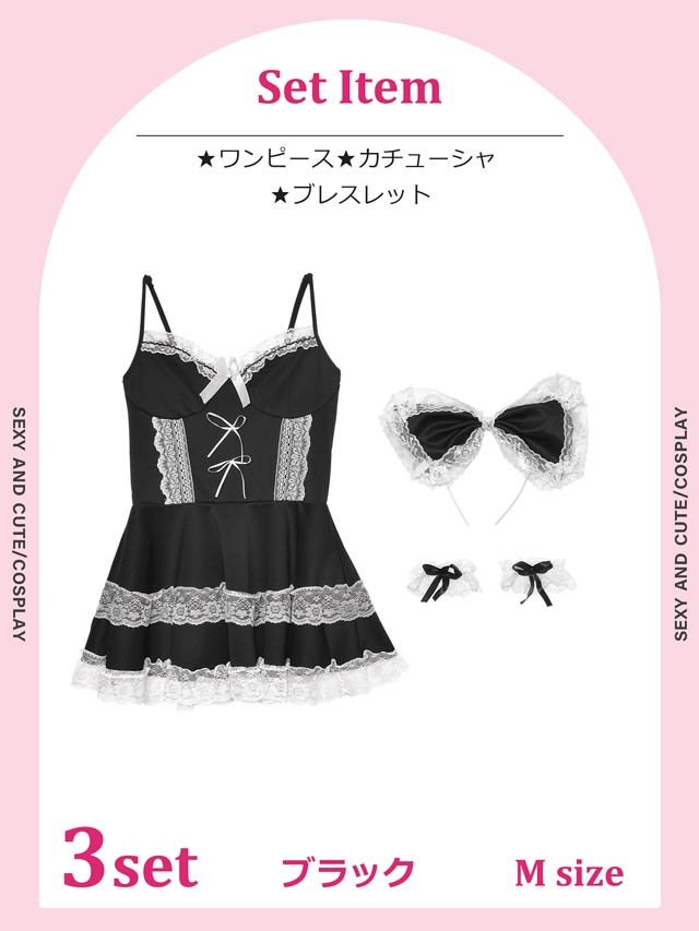 [3点セット]ゴシックガーリーメイド風コスプレランジェリー