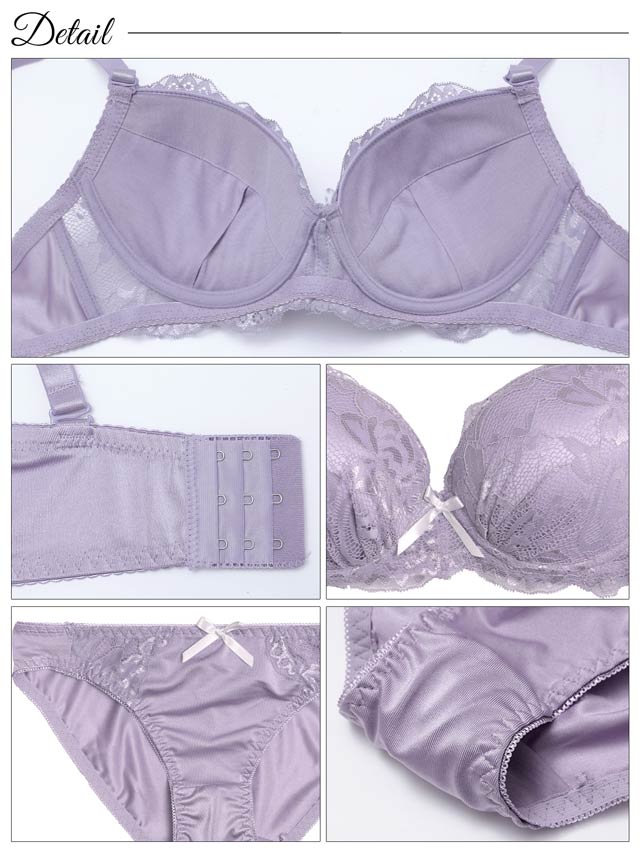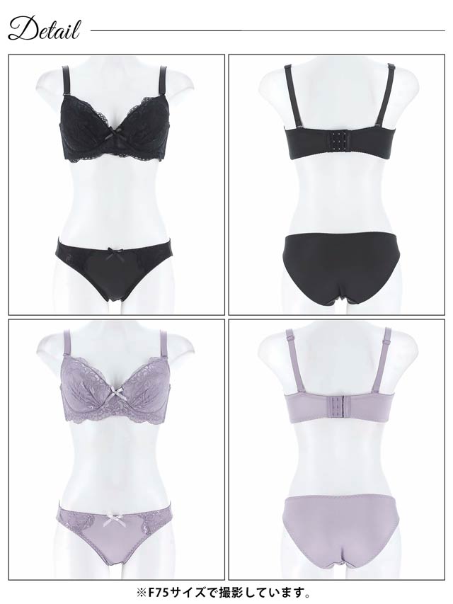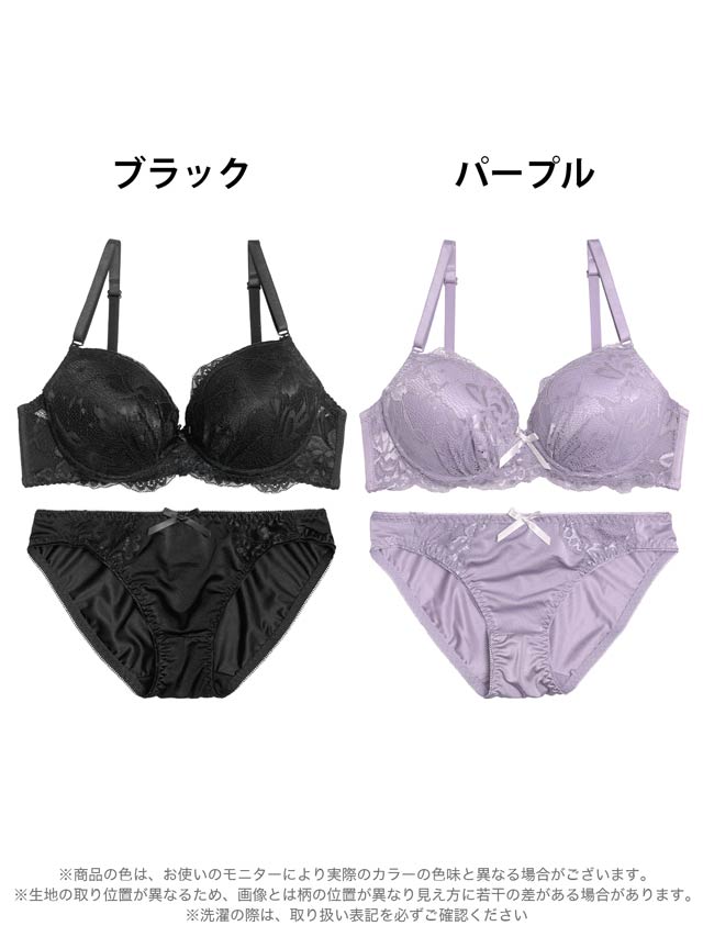 【EFサイズ】シャイニーレースボリュームパッドブラジャー&フルバックショーツ[大人気]
