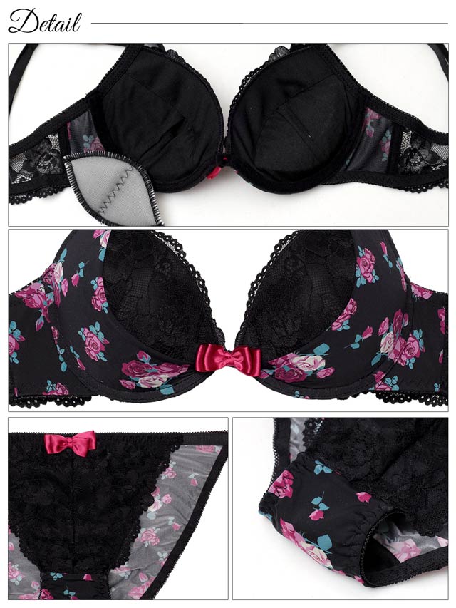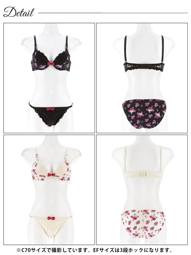 【EFサイズ】スウィートロゼットガーデンブラジャー&フルバックショーツ[大人気]