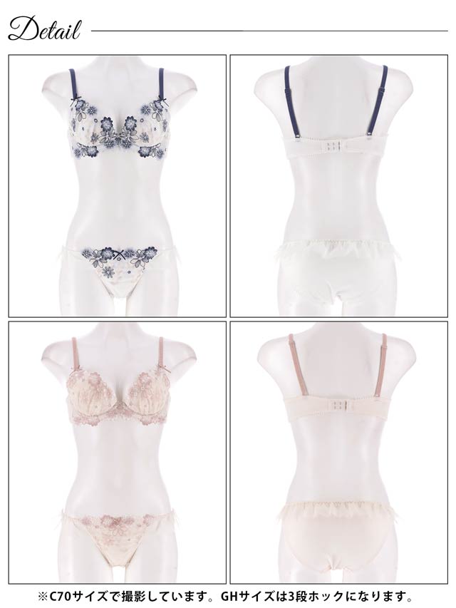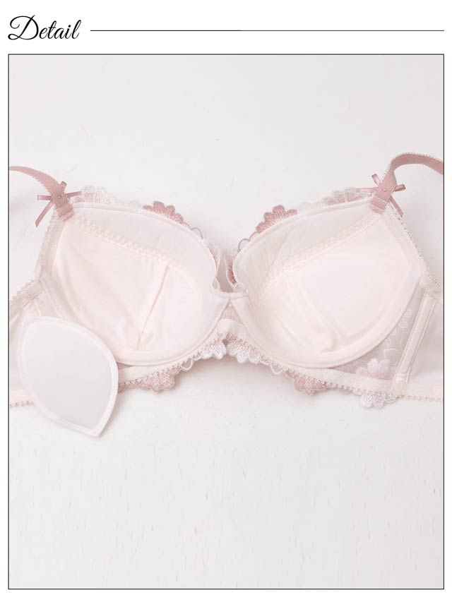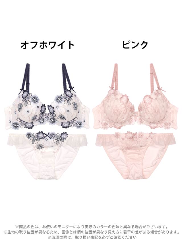 ダスティブルームエンブロイダリー育乳脇高ブラジャー&バック透けフルバックショーツ