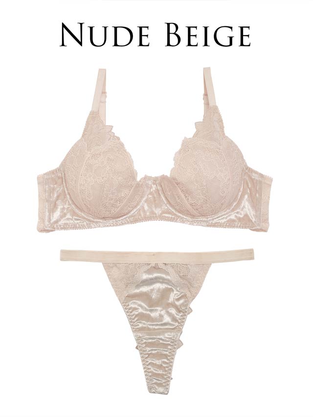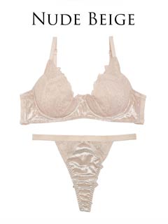 【Libertad Mariposa】Smokey Velour Cut Bra&T-back / N.Beige