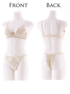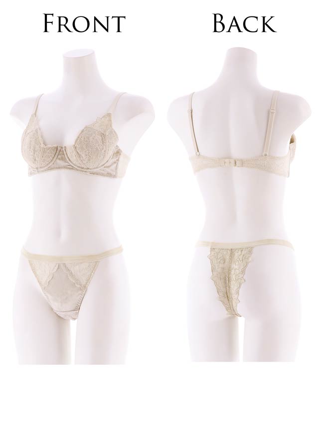 オールレースカットストリング育乳脇高ブラジャー&バック透けフルバックショーツ
