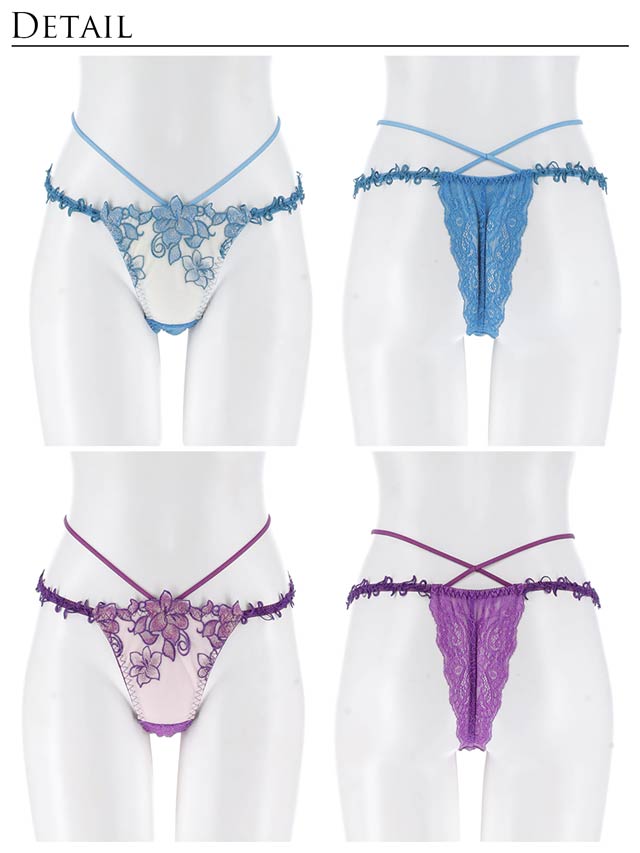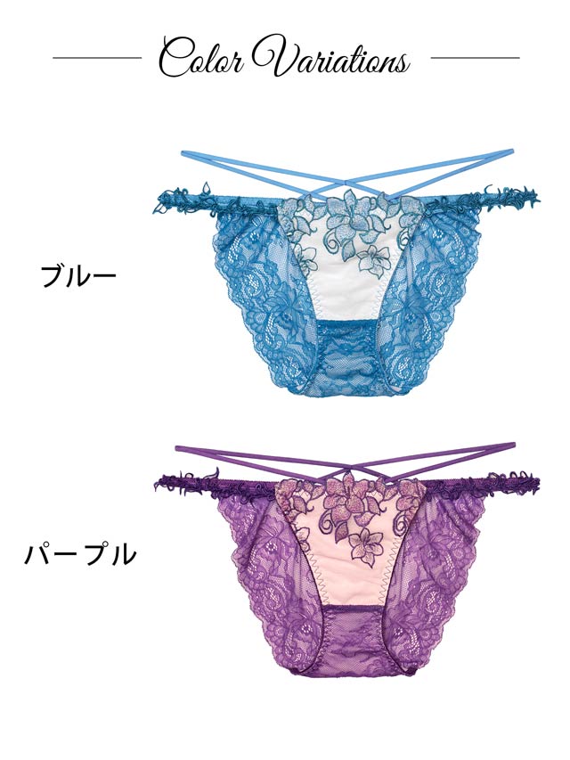 オールレースカットストリング育乳脇高ブラジャー&バック透けフルバックショーツ