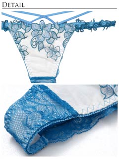 ダスティブルームエンブロイダリー育乳脇高ブラジャー&バック透けフルバックショーツ