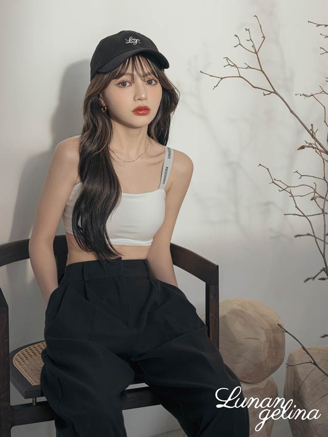 【lunangelina】Logo Strap Sporty Bra&shorts/White